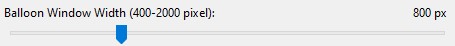 When you click an icon in Google Earth, a pop-up "balloon" window displays the associated photo. Use the track bar to adjust the width of this window.