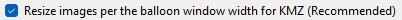 Note: For .kml files, photos are not resized or embedded; the width setting only controls the display size of the balloon window within Google Earth.