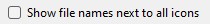 Check this option to display the filename next to each icon in Google Earth. If you have many photos in a small area, we recommend turning this off to avoid a cluttered view.