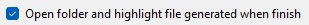 Automatically opens Windows Explorer and highlights the new file once generation is complete.